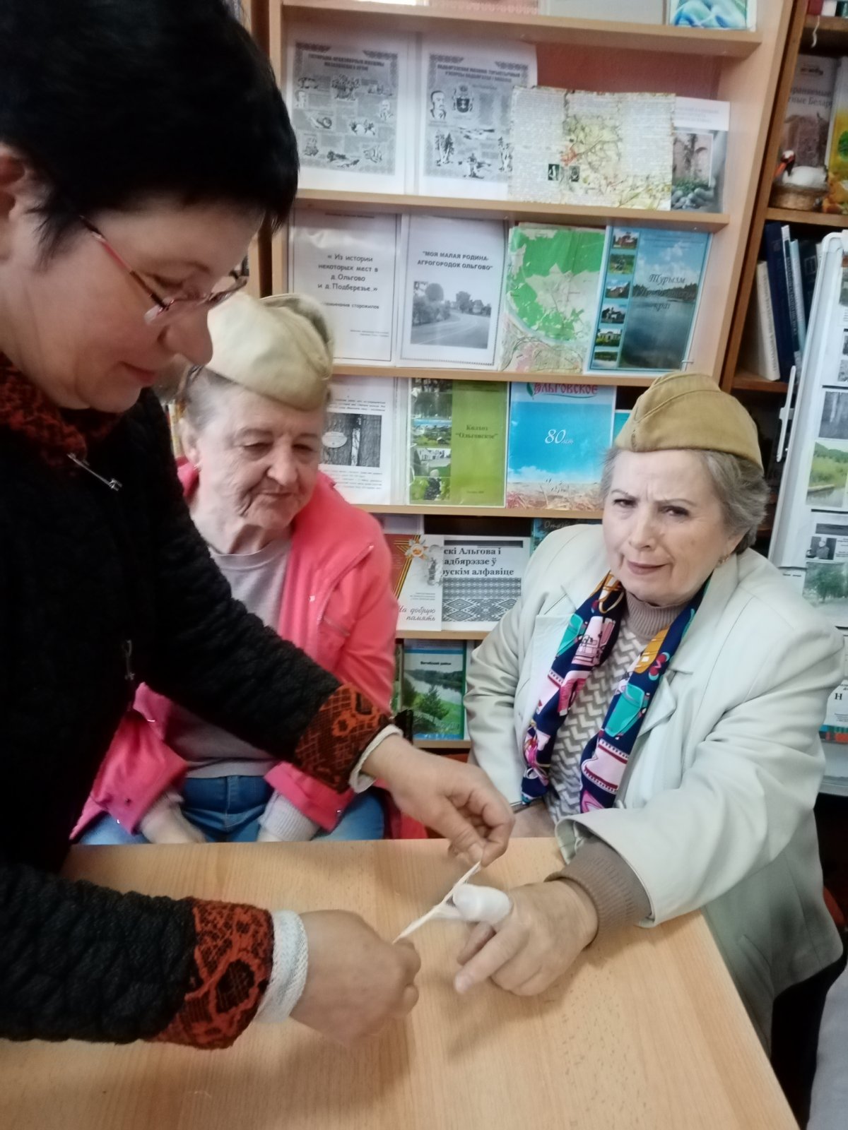 В рамках реализации Национальной стратегии "Активное долголетие-2030" специалистами ТЦСОН Витебского района отделения дневного пребывания для граждан пожилого возраста и инвалилов, на базе Ольговской сельской библиотеки, во время выездного клуба "АНТИ-КАФЕ", была проведена военно-патриотическая игра"Зарница 60+.