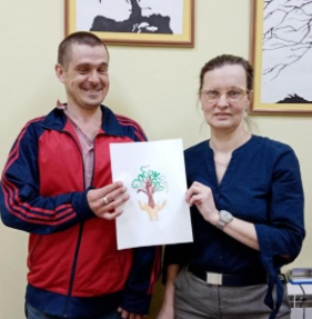 20 апреля 2021 года на очередном заседании клуба «Арт-терапия» постоянным посетителем отделения социальной реабилитации для граждан пожилого возраста и инвалидов Центра, аг.Кировская, Артуром Куприяновым при поддержке заведующего отделением Елены Ворошень разработан и выполнен эскиз социального проекта «Добрый сад». Проект реализуется в населенном пункте Кировская при активном участии посетителей отделения. Силами участников клуба «Атр-терапия» планируется изготовить сувенирную продукцию с изображением логотипа проекта для поощрения волонтеров, активных участников проекта, спонсоров. Это будут сувенирные кружки с витражной росписью, сумки-шоперы изо льна с росписью по ткани и декоративные тарелки.